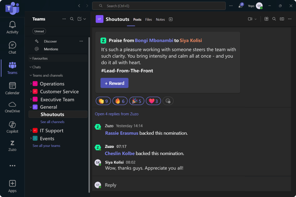 2. Others see, celebrate, and further reward these nominations through comments, emojis, and endorsements.
