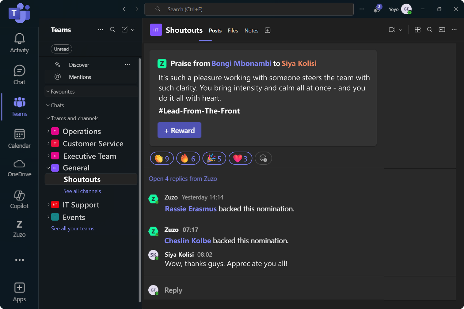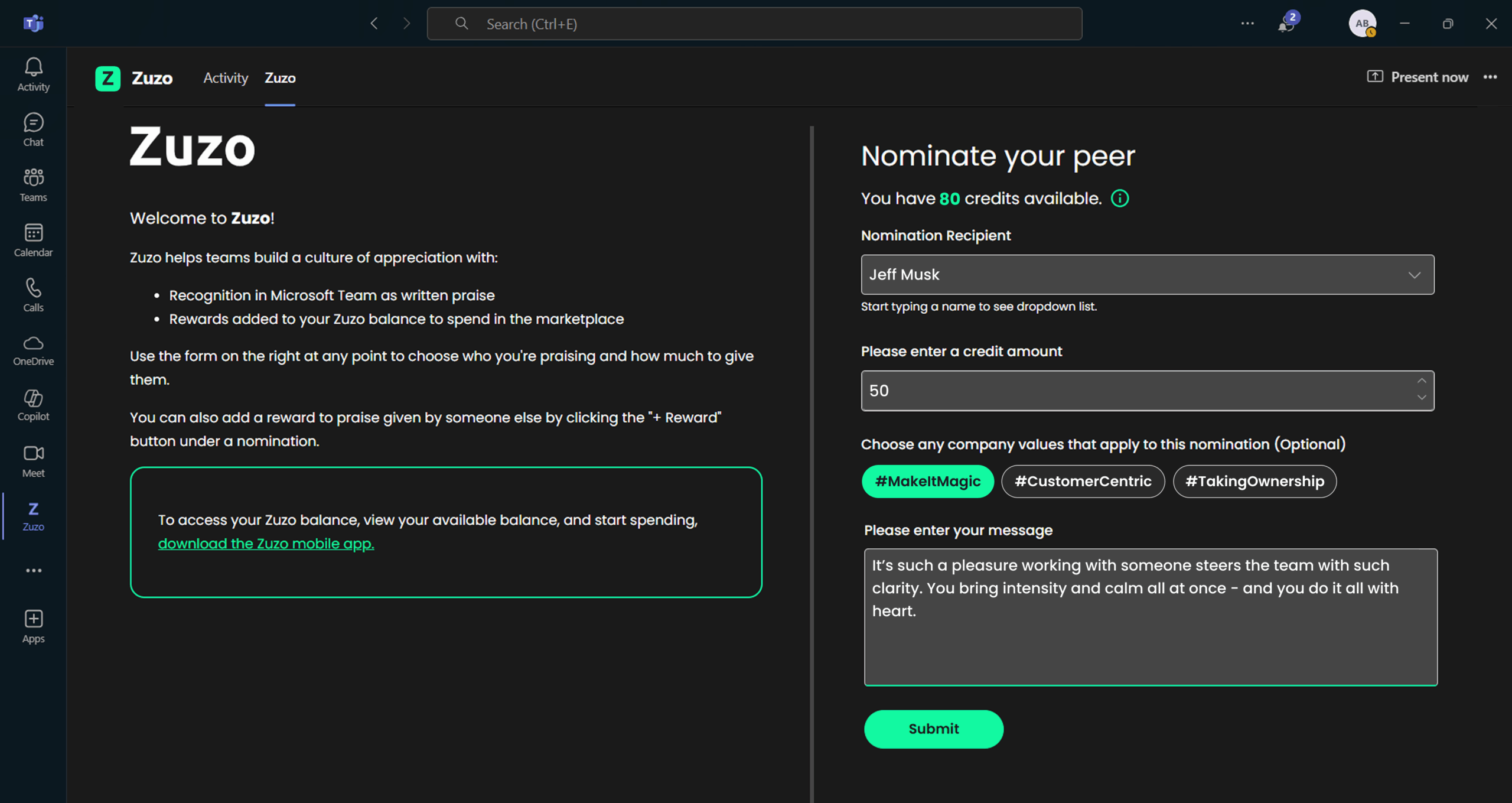 Avoid app fatigue and keep recognition top of mind in your MS Teams and Slack.